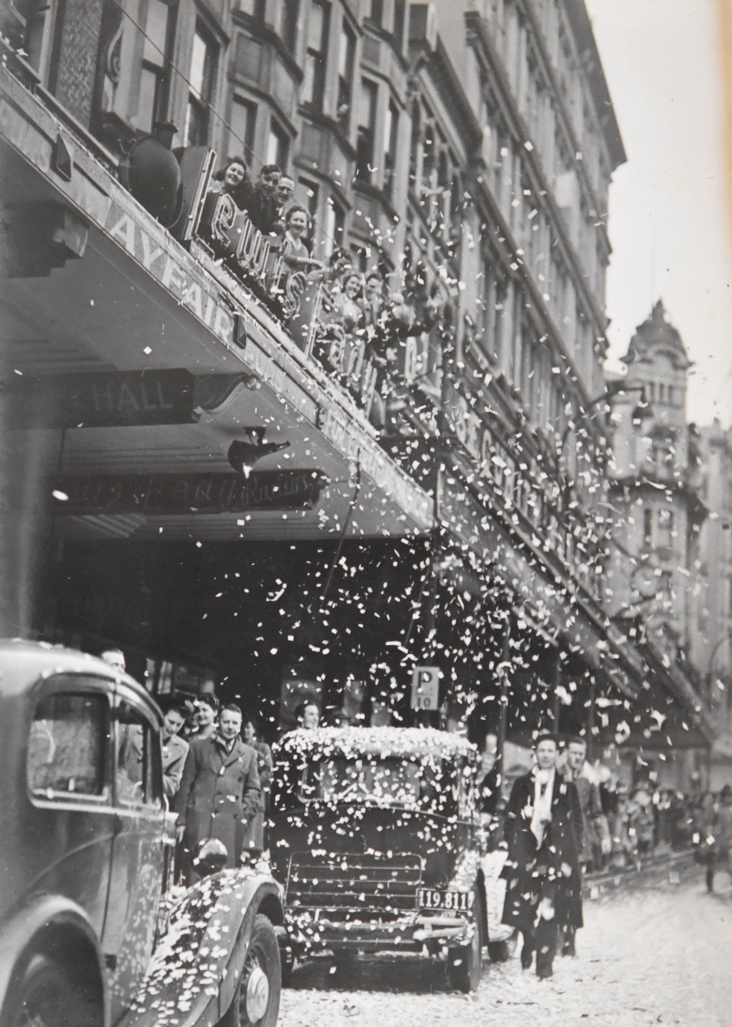 Photo taken outside Lewis Eady’s music shop during the Peace celebrations at the end of WW2. From personal ephemera collection.